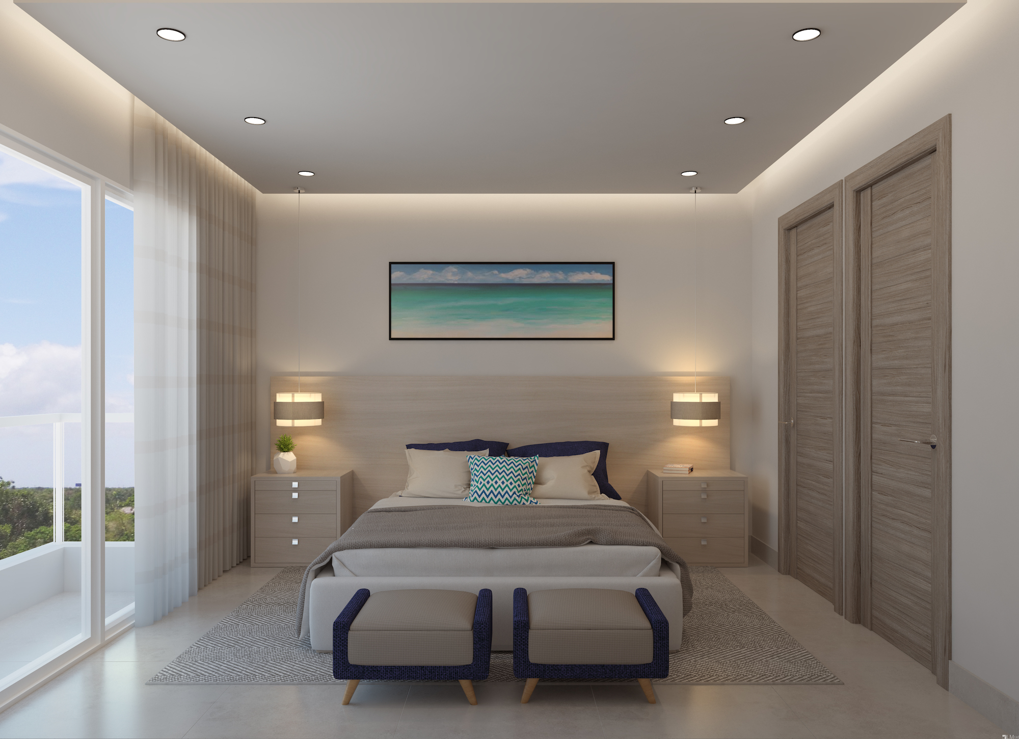 – Pisos en porcelanato. Revestimientos de baños y pisos en cerámica · Puertas modulares.